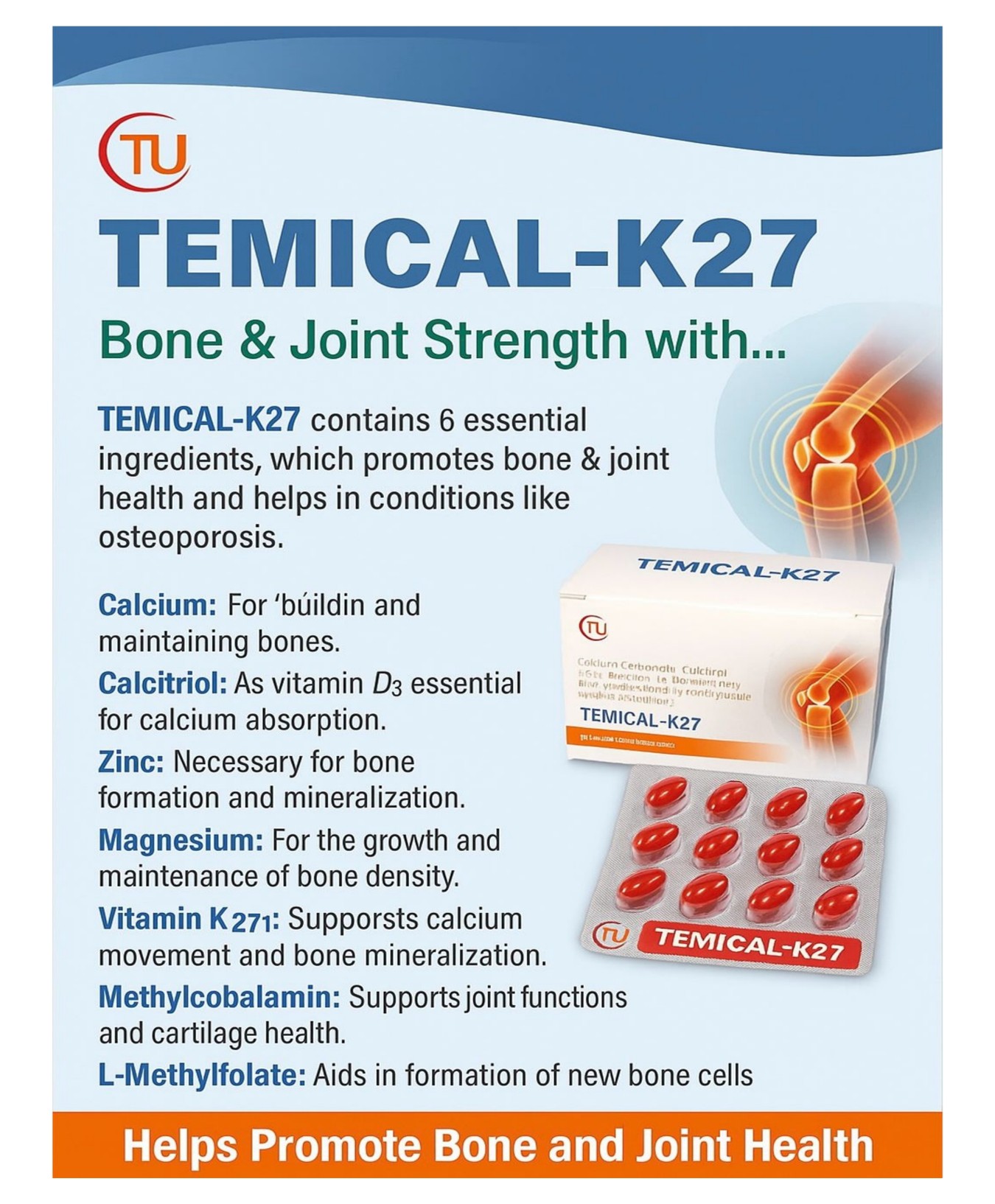 - Description: Comprehensive bone health supplement that strengthens bones, improves mineralization, and supports joint function.